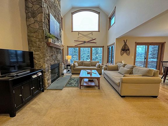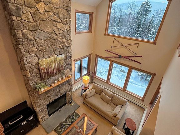 Experience the perfect balance of luxury and convenience in this expansive 6-bedroom home nestled in the prestigious Mount Washington Homes development. With 4 floors of thoughtfully designed space, dual driveways, a cozy yard, and a fire pit, this home is the ultimate setting for your White Mountains adventure. From the home's stunning slope views to the serene wooded surroundings, you'll feel secluded while being centrally located in Bretton Woods, New Hampshire's largest ski resort. This home spans four levels, offering a spacious loft-style living area with a sectional couch, TV, foosball table, and pool table. The fully equipped kitchen features modern appliances and plenty of space to cook for your group. Relax by the stone fireplace in the living room or enjoy the views from the large windows. The dining area boasts a large table with beautiful views and deck access. Take advantage of discounted tickets to the world-famous Cog Railway and pool and gym passes at the luxurious Mountain View Grand Resort and Spa. Garage is available for guest use, but may not accommodate larger vehicles. Additional trash pickups are available for $10. Located in Bretton Woods, this home is just minutes from the historical Mount Washington Hotel and offers year-round attractions. Enjoy world-class skiing, hiking, snowshoeing, and more. Explore the Cog Railway, Santa's Village, Storyland, and the Kancamagus Highway. The State Parks Crawford Notch and Franconia Notch are also just minutes away, making it the perfect home base to explore the White Mountains. This home is in a quiet, family-friendly resort area. Quiet hours are from 10 p.m. to 8 a.m. No trash or food should be left outside to prevent wildlife encounters, with a $100 fine for violations. Unauthorized pets or guests are subject to a $300 fee and immediate termination of your stay with no refunds. Absolutely no parties without express authorization. No smoking inside the unit, with a $250 fee for violation. Check-in is any time after 4 PM and check-out is at 11 AM. Unauthorized early arrivals or late checkouts are subject to a $100/hr fee. Includes Wi-Fi and a comfortable living area suitable for remote work.