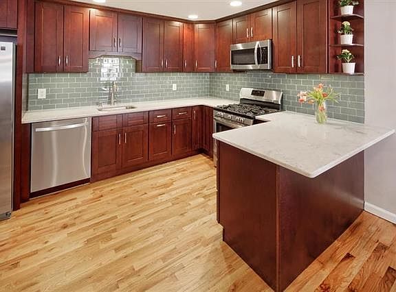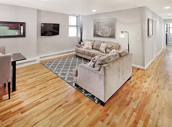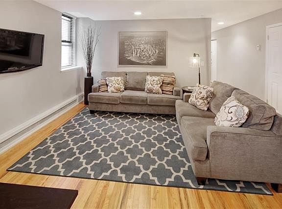 Gorgeous, gut-renovated two bed in Hoboken's dynamic south end. Open chef's kitchen offers quartz countertops and breakfast bar, glass tile backsplash, ss appliances and cherry cabinets. Oversized 'great room' easily accommodates formal dining in addition to ample living space. Master bedroom features a double closet, three sconces and an indulgent en suite bath with custom tile and 'barn style' sliding glass enclosure. Corner 2nd bedroom enjoys great light through four windows, good closet space and easy access to the second, beautifully-finished bath. Brand new shared laundry on the floor plus additional storage space. All this close to the city's best shopping, dining, and parks with easy transportation into NYC via Path, bus or ferry. Rental parking available nearby. 1 year lease. Just one month security deposit. 1 month realtor fee paid by tenant. Landlord pays cold water, trash removal. Tenant pays heat, hot water, gas, electric, phone, internet and cable.