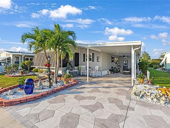 When you are looking for your place to call home you will find this one is calling you! The Owners have left no stone unturned remodeling this home! This lovely 2 bedroom 2 bath home features new windows and plantation shutters, remodeled kitchen and bathrooms, outside shutters, vinyl siding, privacy shades, updated fans and fixtures, flooring includes tile, laminate floors and carpeting. Stamped driveway, back patio with pergola and golf cart pad allows plenty of room for outside entertaining and parking. The front lanai has new windows, tiles floor and AC unit that makes this another area you can use if you have guests. AC replaced in 2022. Extended shed with workshop and the list goes on. Close to dining, shopping, 5th avenue makes this a great location. Low association fees and plenty of activities are all a plus in this 55 plus community.