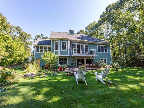 Clean architectural lines and large rooms define this extraordinary home which features soaring ceilings, gleaming hardwoods and plenty of windows. The first floor includes a spacious dining area and living room that share a double-sided fireplace, an open center island eat-in kitchen, a cozy sunroom, and a convenient first floor master suite with a sizeable bath and walk-in closet. Situated in a quiet neighborhood on a cul-de-sac just outside of the charming Village of Historic Wickford. Sit and unwind on the inviting front porch. This beautiful property offers peace and privacy while still having easy access to everything including the Town Beach & Harbor. The walkout basement currently features a full bathroom and art studio and is ready to be finished further. Outside, a private yard, patio, beautiful gardens & deck make a comfortable outdoor living area that open on to a beautifully lush green lawn with lovely gardens. Relax and meditate to the soothing sounds of the water garden. A peaceful and private property within easy reach of an urban environment, this wonderful residence strikes the perfect balance.