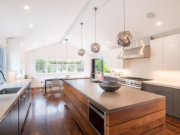 Brand new, beautiful, fully furnished single-family home on a quiet street in central Woodside. Home is one block from Woodside Elementary School and walking distance to Robert’s grocery store, cafes, and shopping. Enjoy an expansive sense of light and space in this indoor/outdoor living environment. Vaulted ceilings throughout with glass walls that open to a patio "living room" with custom fire pit. Step down to pool and adjacent outdoor kitchen all of which look outward and upward to the Western hills. Large eat in chefs kitchen has a modern European feel with a large walnut central island and sleek white and grey cabinets. Equipped with Thermador appliances including 6-burner gas stove, griddle, dual steam oven, 2 dishwashers, large column freezer and refrigerator. A large pantry connects to the kitchen through a sliding barn-style door. The home is built on a single level with 3 bedrooms (all with en-suite bathrooms) plus den/media room. Master bedroom also has a glass wall opening to the patio, views westward and night sky. Master bath has all modern amenities including large walk in closet with built-in cabinets. Two guest/kids bedrooms have custom-built closets and enjoy garden views. Extra half bath, mudroom and separate laundry room. Expansive yard is newly landscaped, and has a lawn, pool/spa, and a concrete patio with fire pit & grill area. Two car garage is equipped to charge two electric vehicles and home is powered by solar with Tesla energy storage system. Enjoy a modern indoor/outdoor, zero emissions California lifestyle in the heart of Woodside.