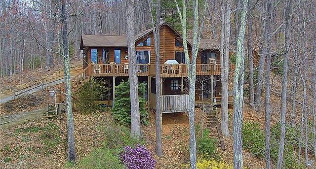 MOVING IN PROCESS!! NEW PICTURES SOON!! Contemporary style Cabin w/cedar siding, with long range views and end of the road privacy on double lot features open floor plan, beautiful fire place in great room w/ cathedral ceiling, galley style kitchen & pantry, Master suite on main level, 2nd suite and 3rd bedroom in basement with laundry and half bath, double decks, two outbuildings/studio and priced to sell.