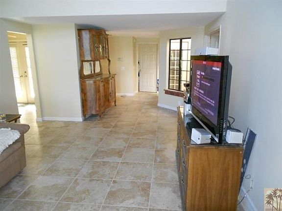 Estate Sale, Son is in property. The home is located on the first fairway of Desert Falls CC. on the lake with North-West Views. Property has been painted and new 20 porcelain tiles throughout condo. Needs updating as kitchen and baths are original. Unfurnished, 2 car garage with separate golf cart garage, one level condo with high ceilings patio can be extended for entertaining. This is priced to SELL. Brokered And Advertised By: RE/MAX Consultants Listing Agent: James C. Greene Jr.
