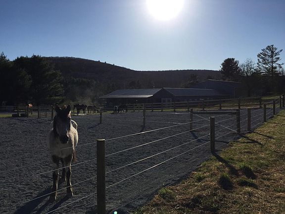 Guest cottage on the back end of a working equestrian facility. The cottage is fully furnished unless you would prefer otherwise. Cozy sunken living room, dining area looks out over farm. Fireplace is non working, and just for show. Bright and light filled space. Great views of the adjacent state game lands. Washer and dryer on site. Garbage, snow removal, lawn care and internet included. Electric is additional. 1 cat ok with additional deposit. There is no smoking anywhere on farm property.