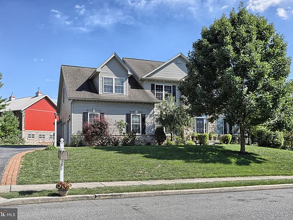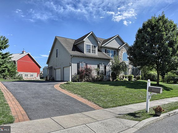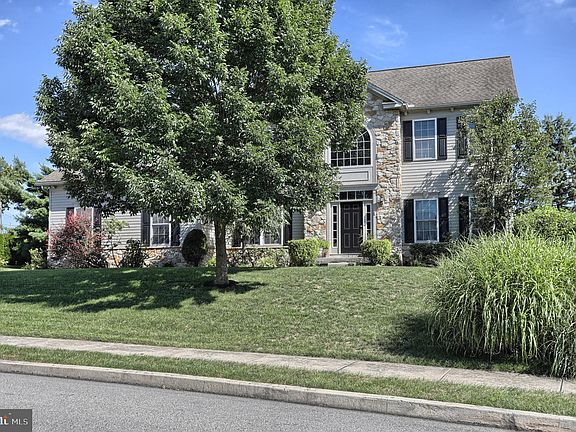 Check out this spacious 4 bedroom, 3 1/2 bath home in the desirable Stone Knoll subdivision (NO HOA) within Palmyra School District. This home features 3100+ square foot above grade PLUS a finished basement with recreation and workout areas, a bar, climbing wall and 5th bedroom/full bath. As you enter the home, you will first experience the size and beauty from the two-story foyer. To one side of the foyer you will find a private office and to the other a living room that leads into a large formal dining room. A large kitchen with island, Corian counters, and stainless steel appliances and an incredible family room with vaulted ceilings and a natural gas fireplace with gorgeous custom built-ins. Enjoy the beautiful bamboo hardwood flooring throughout the first floor. Upstairs showcases 4 bedrooms including a hallway bath and luxurious owner's suite. Entertain outside with an included hot tub and pergola and firepit on the pavered patio. Schedule a private showing today!
