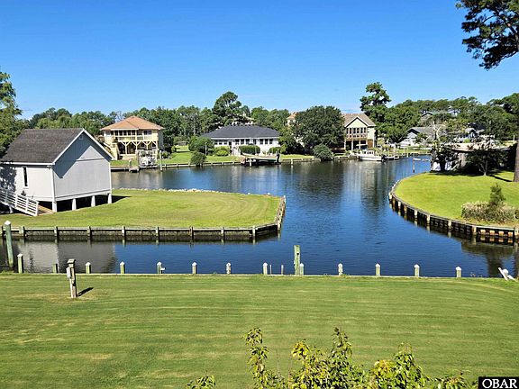 Canal Front Home with 100 FEET OF CANAL FRONTAGE!  Fantastic Water Front Location in The Baum Bay Harbor Subdivision of Kill Devil Hills CLOSE TO THE BEACH!    Great VIEWS of the WATER!  Three Bedrooms and Two Full Baths sold partially furnished!   Two Car Garage and Two Separate Storage/Workshop Areas on the Ground Floor w/their own Garage Doors!  Plenty of Shelves & Work Benches.  Purple Martin Houses in Back Yard! The Baum Bay Harbor Civic Association is Voluntary w/minimum fees and additional fees apply for use of the Boat Ramp. Irrigation system is connected to a well. Chair lift on interior stairs. Ensuite w/Walk-In Closet & Jetted Tub.  Original Owner!  Brand New Septic System, Tank, Drain Lines, and Injection Pump Installed in June 2024.  Water Front, Water Views, Canal Front and Near the Beach!