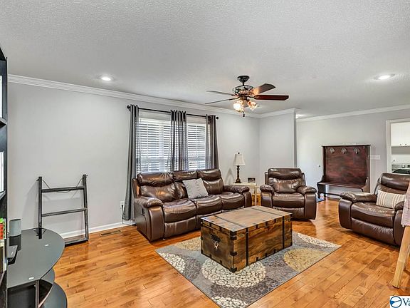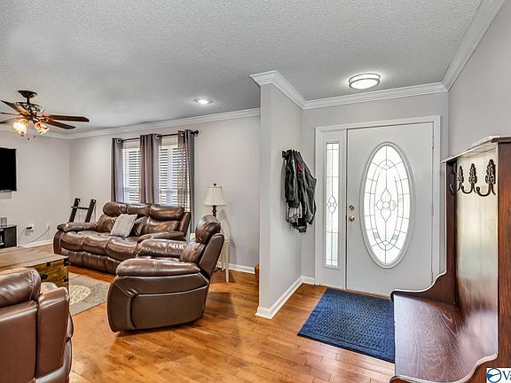 132 Belair Drive, Arab. Picture Perfect 3Bed/2 Bath home in Pristine condition. Isolated Master bedroom with double trey ceiling. You will love the Rec room on the main floor with hardwoods, gas log fireplace and crown molding! Eat-in Kitchen has stainless steel appliances. Family, foyer and dining area have hardwoods and crown molding. Fans in all the bedrooms. Wonderful 16x14 new screened in porch. *New Gas HVAC, Gas Hot water Heater - 2020* Nest thermostat, blink X2 security cameras* Carpet allowance to be given with acceptable offer.