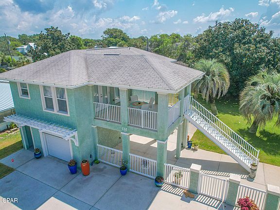 The 3 BR 2 Bth Home features a charming beach decor with the Living Area, Dining Area and Kitchen on the second floor. Surfaces include tile and granite. Garage is oversized with plenty of storage. Exterior includes Large Covered Patio and a Large 2nd Floor Covered Balcony offering Gorgeous Gulf and Sunset Views. 70x104 Lot. Irrigation is on Well Water! Conveniently located 10 minutes from Scenic 30A to the West and 15 minutes to Pier Park to the East. BUYER TO VERIFY ALL IMPORTANT INFORMATION