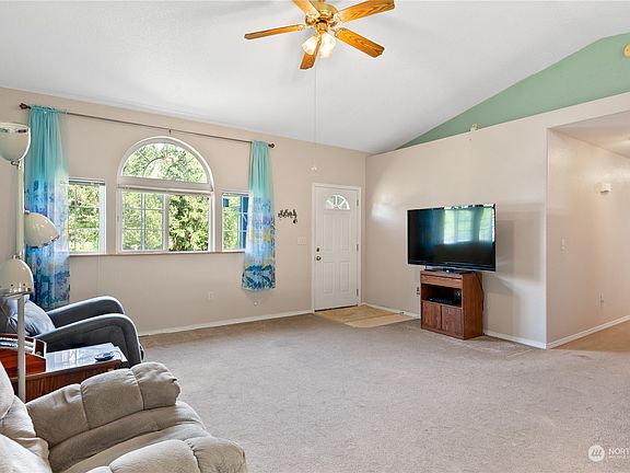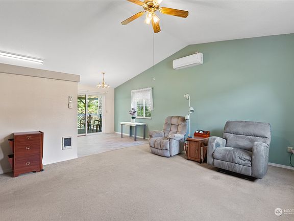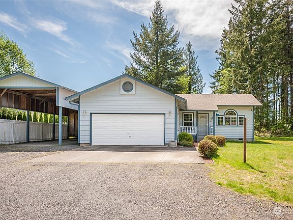 Start packing if you want a great one level home on 1.25 acres with covered RV parking! 3 bedrooms, 2 full bathrooms & attached garage. Living room with vaulted ceilings & ductless heat pump. Primary bedroom with two closets & attached bathroom. 2 additional bedrooms. Laundry room with utility sink. Large covered back deck. New roof 3 years ago & water heater 1 year ago. Great area next to house to build a shop in the future! Make your appointment before it's too late!