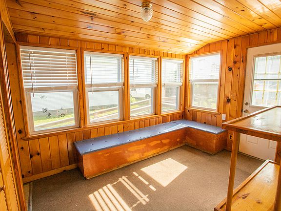 As you enter, you'll be greeted by a sunroom featuring tongue-and-groove pine and ample storage, creating a cozy spot for relaxation. The spacious kitchen boasts stainless steel appliances, providing a modern and functional space for cooking and entertaining. French doors lead you to the expansive family room, where a cathedral ceiling and vinyl flooring create an inviting atmosphere for gatherings. The dining and living rooms, both adorned with beautiful hardwood floors, add a touch of elegance to the home.