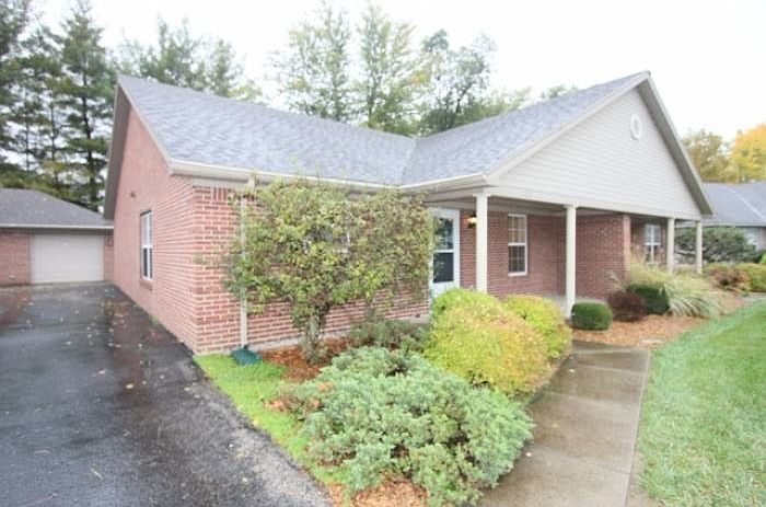 EASY LIVIN', LOW MAINTENANCE AND VERY AFFORDABLE/CONVENIENT!!! 2BR/2BA Bittersweet Terrace patio home with spacious covered front porch to relax/sip coffee/read, nice/new carpet and freshly painted neutral interior. BIG kitchen/dining area includes breakfast bar/recessed lighting, refrigerator/oven/range/dishwasher/built-in microwave, great room features vaulted ceiling and fireplace, master has trey ceiling w/private master bath/jetted tub, spacious additional full bath with step-in ceramic tile shower. Out back find semi-private yard w/trees, patio area, a detached garage and driveway with plenty of parking. Location already great but very conveniently situated for when new East End Bridge complete. HOA fee $102 monthly covers exterior maintenance/landscaping.
