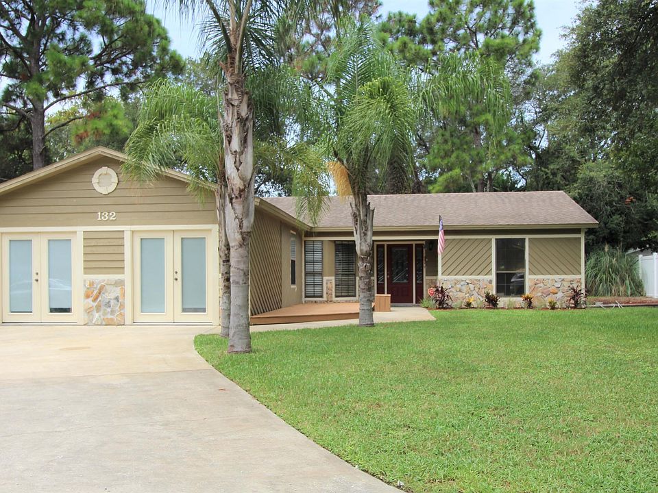 Location! Location! Beautifully updated home available in St Augustine South, a boat and RV friendly community with no HOA. The kitchen and baths have been updated and have new plumbing. The A/C was replaced 3 years ago and the roof 7 years ago. There is a large living room with a fireplace and door to the screened lanai. The owners suite has sliders to the backyard and an attached full bath with twin vessel sink vanity. There is also a flex space for your home office or den. The fully fenced backyard makes a play place for children or that special fur baby. You and your friends can enjoy evenings sitting on the front deck or around the firepit in the back. Your grill will fit nicely on the patio just outside the lanai. Great home for people starting a family or enjoying retirement.