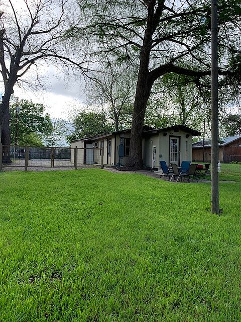 Cozy cottage with large living area and full bath. Completely renovated in 2010 to include large 2 car garage, double paned windows, & on demand hot water system. Step outside into a park like setting with mature pecan & cypress trees to relax in your inviting spa. Or stroll down the lush lawn to the water's edge where you will find a boat ramp, a 100+ ft dock leading to the boat house which includes lift, or enjoy cooking up the day's catch on the spacious deck complete with outdoor kitchen. Realtors with buyers are welcome.