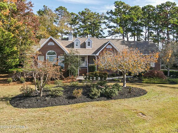 Welcome to 132 Captain's Lane in beautiful North Shore Country Club Community! Dreaming of your coastal retreat, right on the golf course with amazing views? Look no further, you've found your slice of paradise! These 2,834 square feet home has all the room you need to create your coastal retreat. As you enter the home you will be greeted by a beautiful tile entry leading into the spacious living room complete with built-in bookcases and a cozy fireplace. Skylights allow natural light to pour into the living area. Right off the living room you will find an indoor oasis, complete with hot tub, and loads of space for you to create a relaxing retreat/entertaining space. The entire home has been recently painted in soothing coastal colors, and features new carpet in all the bedrooms. Continuing to the right of the home, you'll find the chef's kitchen with formal or informal dining rooms. Through double doors the primary suite awaits you, conveniently located next to the outdoor room with the hot tub for easy access. This beautiful suite has a newly updated bathroom with a modern soaking tub, tile step in shower, quartz countertops and new LVT flooring. The laundry room is located conveniently off the primary suite for ease. On the left side of the home are three sizeable bedrooms offering plenty of options for guests or office space. The first bath located in the hall features a tile shower, rain head shower, towel warmer a perfect retreat to pamper your guests. Further down the hall is an additional full bath featuring updated flooring quartz countertops and lighting. Outside you'll find a Gardener's dream, every season brings a new surprise with flowers blooming in this thoughtfully designed and lovingly maintained garden. Minutes to the beautiful beaches of Topsail Island and the USA Today's Top 10 Beaches in the US our very own Surf City Beaches. The perfect location to live the coastal dream.
