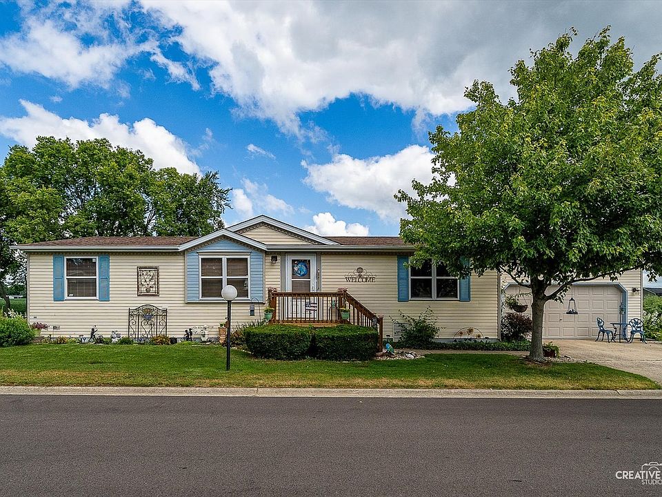 Welcome to this spacious and sunlit 3-bedroom, 2-bathroom mobile home that offers the perfect blend of comfort and rural charm in the 55+ Wildwood Community. Nestled in a peaceful setting, this well-maintained home backs up to open cornfields, providing a serene, private backdrop and beautiful country views right from your backyard. Inside, you'll find a bright and open living area ideal for relaxing or entertaining, a functional kitchen with plenty of counter space, and a cozy dining area. The primary bedroom features an en-suite bathroom, while the two additional bedrooms are perfect for family, guests, or a home office. Whether you're sipping coffee on the porch or enjoying the golden glow of sunset over the fields, this home offers a tranquil lifestyle just a short drive from town amenities. Don't miss your chance to own this slice of quiet country living!