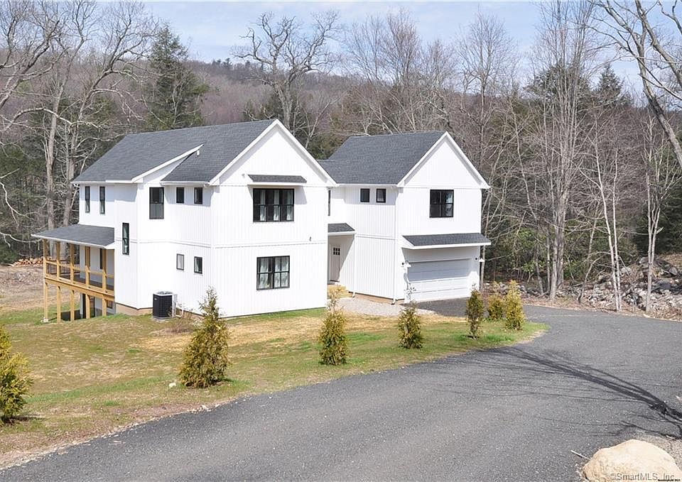 This one of a kind, Contemporary Colonial built less than 1 year ago is situated on 2 acres of desirable land with beautiful views of Cherry Brook. Walking in, you’re greeted with 9’ ceilings and an abundance of natural light in a spacious entryway with farmhouse style built-ins and a bright powder room. The custom kitchen boasts a black leathered granite island, white quartz countertops, high-end Cafe appliances, 2 sinks, pantry cabinet, and a wine refrigerator. The kitchen opens up to the great room with a 28’ wall of windows and a vaulted, beamed ceiling with a modern wagon wheel chandelier. 3 sliding doors lead to approximately 90ft of wrap around porch where you can relax and hear the brook. Back through the expansive entry hall you will find the first floor primary bedroom with ensuite bath. Up the bright double stairs is the impressive loft with wet bar that overlooks the great room and treetops. Here, upstairs you’ll find 3 additional bedrooms and another full bathroom with a double vanity. Other features include but are not limited to, recessed lighting throughout, 3 zone central heating/AC, a new well with triple water filtration system, Anderson windows, a bonus shed attached to the garage, and an additional 800sqft of walk out basement space. Conveniently located just minutes from Collinsville, the Canton Shoppes, Cherry Brook Elementary, Route 202 and 44.