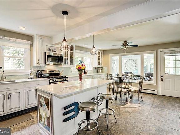 Remarkable! Completely redone 1.5 cape nestled in the center of town. Wonderful layout--the generous living room with cozy fireplace opens up to the sunsplashed dining area that overlooks the jade green lawn. Original gleaming hardwoods grace the entire first floor. Fantastic kitchen--All done up in shades of white and pale blues with gleaming cream granite countertops, large center island, eat in kitchen. Extend your entertaining into the adjacent 4 season room--never worry about the weather again. Convenient 1st Floor Master en suite with banks of sunny windows, large oversized walk in closet, gorgeous hardwood floors and attached pristine full bath that has recently been renovated make this a special retreat. An additional 2nd bedroom and immaculate full hall bath round out this floor. Upstairs, a huge bedroom with gorgeous banks of windows is currently being used a second family room. Another full updated bath and spacious 4th bedroom provide plenty of space for family guests. Large clean basement, 1 car garage, new sprinkler system, new security system, new recessed lighting, 1st floor laundry, 2 zone heat and air-1st floor new ac and heat 2018, 2nd floor ac 2019.