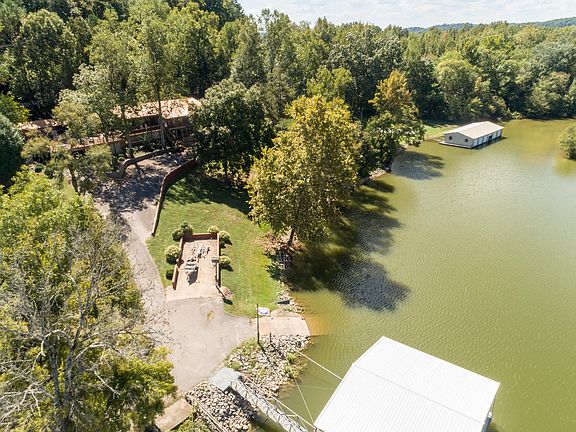 Waterfront Home w Private Dock!! Waterfront views abound in this custom waterfront home! Open concept in the living room w/gas log fireplace-open to office area-open to large wet bar area- open to custom kitchen featuring work island-separate large breakfast bar-stainless vent hood-stainless appliances. Separate laundry. One full bath has custom handicap walk in tub. Master features a large sitting area separated by columns into the waterfront views of the bedroom-with french door out to private deck. 2nd bedroom and bath also on main floor. With den/flex room out to private deck. Partial basement has 3rd bedroom, den, huge closet and separate entrance-perfect for guest/mother in law suite. Storm shelter in basement. Whole house generator, tankless water heater. Decks surround the home and short walk down to covered boat dock w/boat lift. Large area to park R.V . Located between Memphis and Nashville and next to Mousetail state park-very short ride out to main channel of TN River!