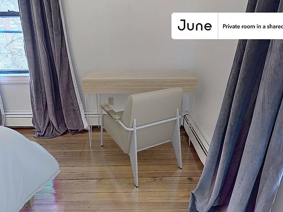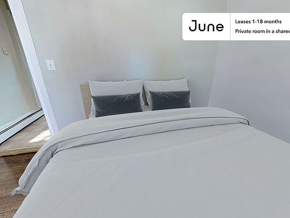 This Queen room in Brighton is available on a 12 month lease or a flexible short term (31 to 364 days) lease. You pick your custom start and end date. Monthly rent rate is determined by furnishing preference, move-in date and move-out date. Speak to a June representative for recommendations on the best stay duration for the lowest rate.