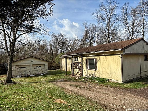 Incredibly affordable investment or residential opportunity with super low taxes on this .99 acre level lot. Offering a split bedroom floor plan separated by open kitchen/ dining room, sunken living space and awaiting your remodeling ideas to make it your own home sweet home. Featuring two decks, one covered, with plenty of room to roam, garden and play. Convenient large storage shed on concrete pad and off street parking for 6 cars with a detached 2 car garage. Priced well below recent appraisal. All utilities on site with Gas, Electric, Public Sewer & Public water. 3 Miles to Gravois Bluffs, shopping, restaurants & services. Country living but close to everything. To be sold As-is, CASH ONLY. All outbuildings stay including barn, shed and storage trailer.