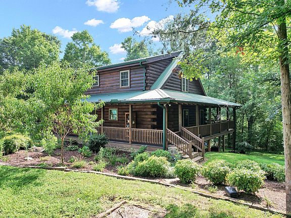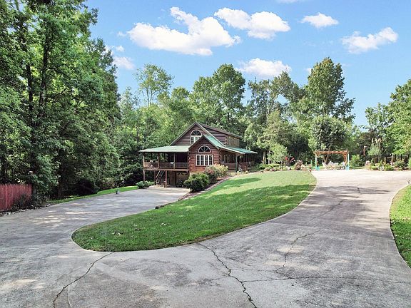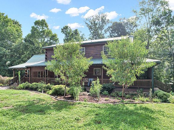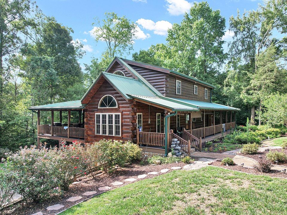 This stunning log home seamlessly combines rustic charm with modern amenities, set on 4 beautifully landscaped acres. This custom home features a wrap-around porch, an in-ground pool, a pool house, and a fully fenced yard, creating a park-like setting with mature trees and abundant greenery. Inside, you'll find soaring tongue and groove ceilings, a georgous stone fireplace, and a large master suite with an ensuite bath and a very large closet and laundry room with an abundance of built in storage. The open kitchen and dining room have doors leading to the wrap-around porch and huge windows. Upstairs, there is a large guest bedroom with a bath and a laundry chute to the mudroom/laundry room. The basement includes a third bedroom and two additional rooms that can be used as an office, den, or other bedrooms, and an oversized two-car garage. Outside, the pool house offers a covered area and two enclosed rooms, one of which houses the pool motor. The yard features a horseshoe pit, fire pit, garden area, and storage shed. The gated driveway is fully cemented, providing plenty of room for parking. Enjoy the comforts of country living while remaining conveniently close to shopping and amenities. Located just ten minutes from the Cherokee National Forest, this home offers easy access to outdoor activities like fly fishing, kayaking, tubing, boating, hiking, and hunting. All outdoor furniture and washer/dryer, convey with home.