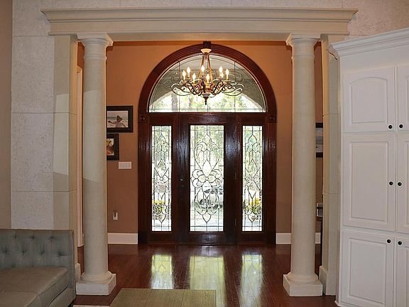 European artisan upgrades have been added throughout this appealing, 4 bedroom, 4 bath, 1.5 story, brick home. Inspiring architectural details including real stucco with cement finish on the exterior; interior finishes include variance plaster, Tivoli stone as well as Kourasanit stone finishes. This practical, 3-way split plan with upscale kitchen, baths, and finishing details throughout is positioned on a large 1.93 acre, park-like setting and is sure to win the hearts of busy families looking for a restful, inspiring place to call ''home.'' Better see this one early! 1st American Home Warranty included!
