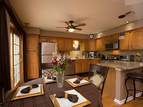Backs Up To Woods! Spacious Townhome features foyer w/ wood flr, formal living & dining rm w/ columns, updated eat in kitchen w/ oak cabinetry, granite counters & breakfast bar, ssteel appliances & wood flrs open 2 story family rm w/ palladium windows & gas fireplace, 2 generous sized bdrms, large loft, 2 1/2 bths & garage! Master Suite boasts vaulted ceilings, his & her walk in closets & private full bath w/ soaking tub! Private fenced in deck area, fantastic location, minutes to everything!<br/><br/>Brokered And Advertised By: C21/ Schecher Realty<br/>Listing Agent: MICHELE ASHKENAZI