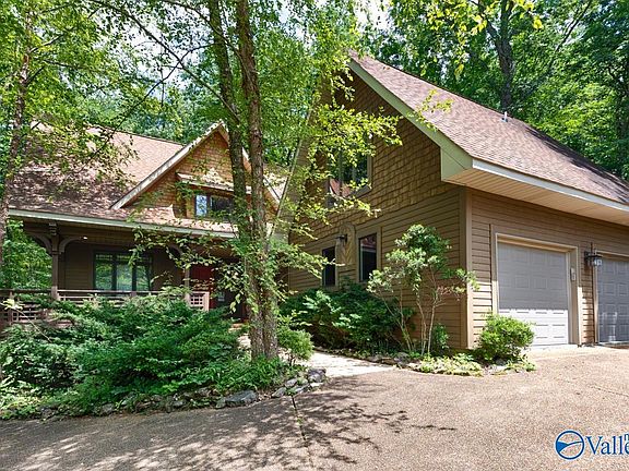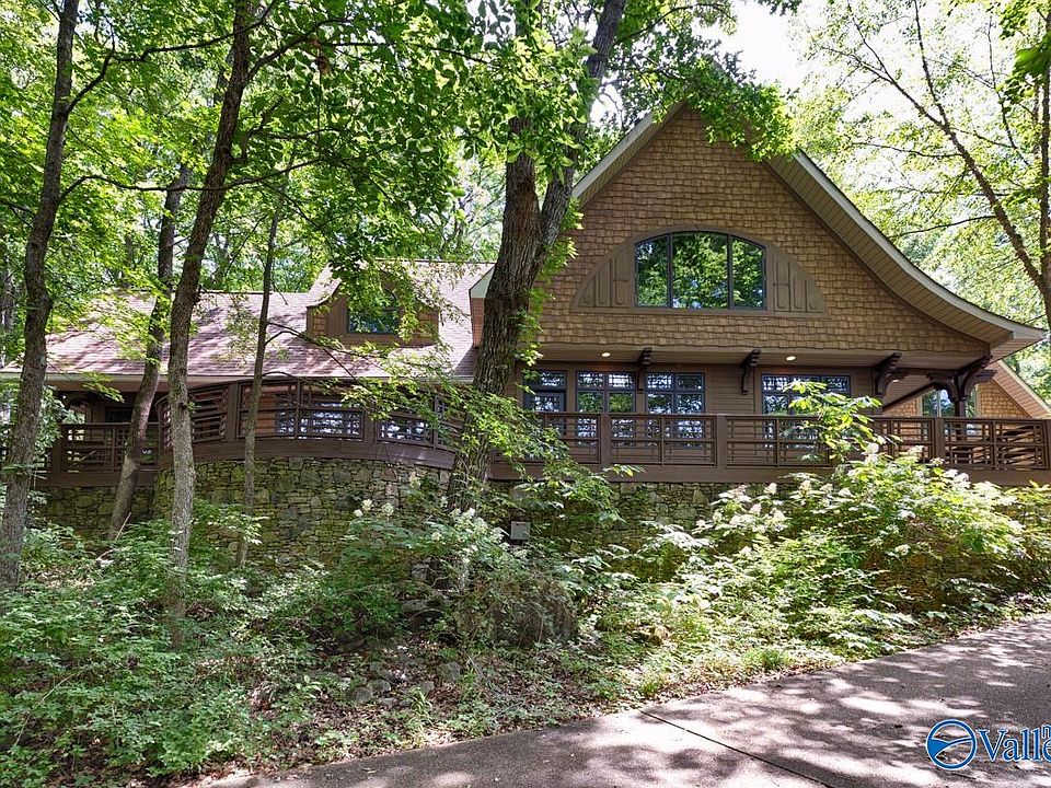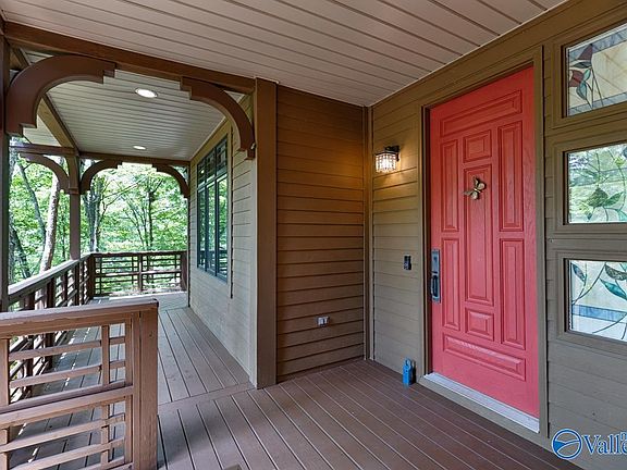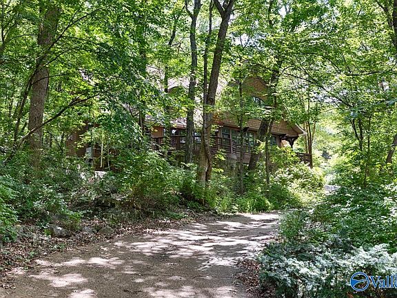 Unique custom home nestled in the serene woods on Monte Sano Mountain, this enchanting property offers a tranquil retreat surrounded by nature. Immerse yourself in wildlife with large picture windows on all sides and deep porches for bird watching. This craftsman home has Prairie architectural details and custom wood work with hand-forged iron by New Market Iron. Primary suite has vaulted ceilings, Ceramic Harmony custom stone bathroom and double walk-in closets. Spacious rooms throughout with high ceilings and wonderful natural light. Separate guest apartment has privacy and its own en-suite bath. Rear stone pathway and fire pit. This one offers perfect balance of seclusion and convenience.