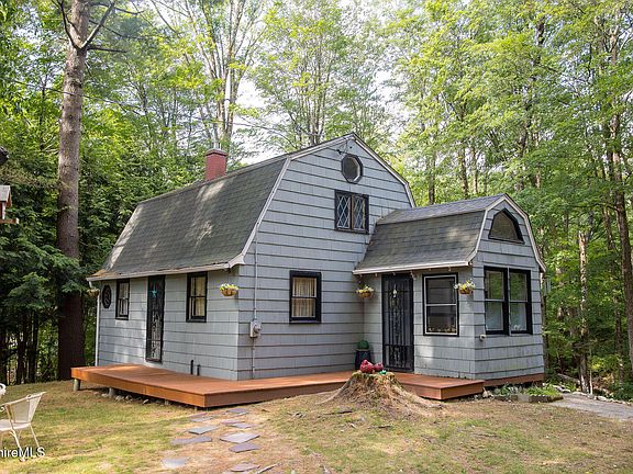 This charming Dutch gambrel cottage is situated in the Shawnee Shores Estates, a small community of homes on the upper end of Shaw Pond, just a 1/4-mile to a quaint resident beach with a picnic area, floating dock, and opportunities for swimming, fishing, and boating. Tucked into the woods, this 2-bedroom home is surrounded by a lovely yard with patio and outdoor fireplace. Step onto the front deck and through the side entry into a bright seasonal room that flows into the kitchen and separate dining room. Also on the 1st floor is a warm and inviting living room with bamboo flooring, and a smartly renovated bath with classic subway and marble penny tile accents. On the 2nd floor you'll find 2 good-sized bedrooms, while the lower-level walkout basement offers great natural light, ample storage, and a laundry area with a brand-new washer and dryer. There's even potential to finish some space for additional living area. Just 2 miles from Jacob's Pillow and 13 miles from Tanglewood, this tranquil cottage is convenient to all the Berkshires cultural attractions.