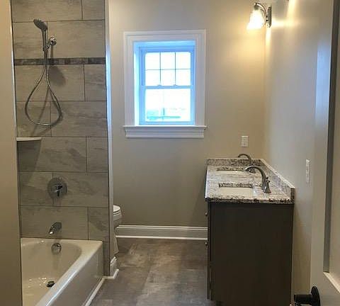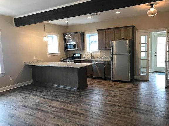Completely renovated apartments, all new and separate systems, everything new. Only 1 previous tenant. MUST SEE! Open floor plan kitchen / living room. Spacious full bath with double vanity. New central HVAC system. Mud room with washer/dryer hookup. Deck which leads to back yard. 1 block to Train Station and 2 blocks from Bus stop. Yard maintenance and water included. No pets. Owner pays for water/sewer & yard maintenance