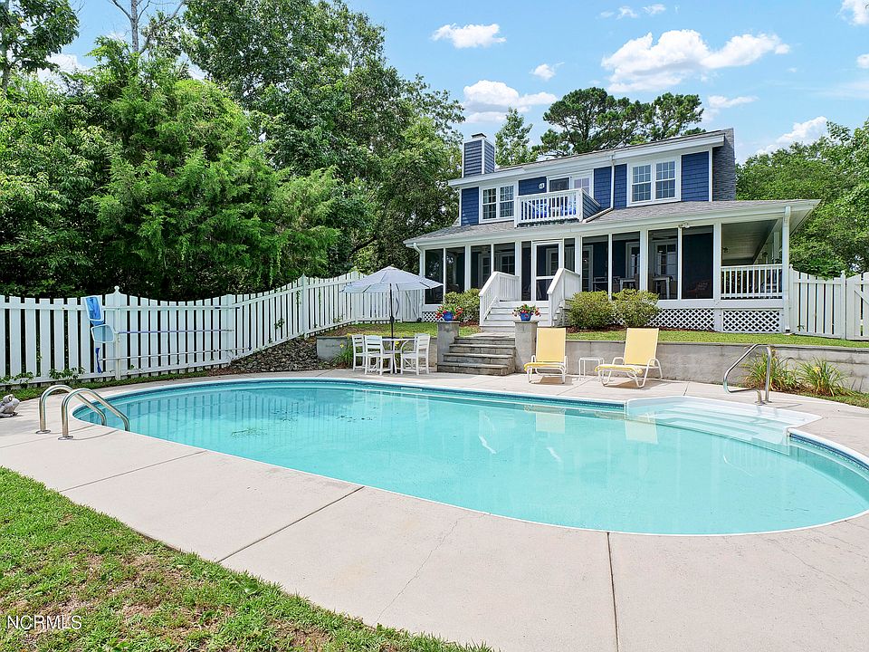 Introducing a magnificent waterfront retreat with a stunning pool nestled on a generous parcel of land in the prestigious Mallard Bay neighborhood. This exceptional home offers the perfect blend of elegance, tranquility and recreational indulgence providing an extraordinary living experience for those seeking the epitome of waterfront living. With your own private pier, and floating dock on water leading directly to the ICW all that's missing is a boat. Mere minutes will land you on a barrier island for a day of water fun and sun, fishing in the Atlantic Ocean or enjoying local waterfront dining by boat. The spacious open floor plan seamlessly combines the living, dining, and kitchen areas, providing an ideal space for entertaining family and friends, all anchored by a tiled hearth fireplace. Offering picturesque vistas the screened porch blends the outside tropical oasis with indoor living year round, while triple French doors enhance both living spaces. Inside the luxurious master bedroom is a true sanctuary, boasting serene water views, a spacious sitting area and private intimate deck overlooking the pool, and magnificent waterfowl. Three additional bedrooms are spaced both upstairs and down. This one owner, custom built home showcases a myriad of impressive features such as solid wood floors, doors, and kitchen cabinets, cedar siding that was dipped on both sides prior to painting, a new roof in 2020 and two Trane heat pumps. Located next to world class Harbour Village Marina, the most traffic you may encounter is neighbors on golf carts darting to and from each other's homes. If privacy and serenity are your preference, this home is tucked far off the road designed primarily with waterfront living in mind.