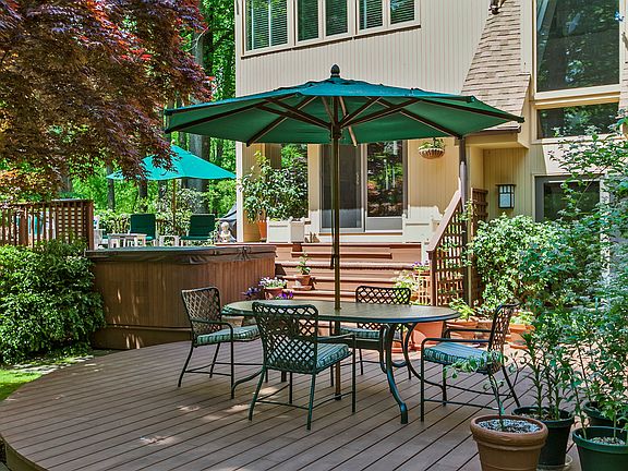 Perhaps 1,000 tulips pop up every spring among the dogwoods, Japanese maples and meandering paths surrounding this renovated multi-level home within a particularly beautiful section of Princeton. A gated driveway and deer fencing protect the exceedingly private 3.5-acre property, 2 of which are enchantingly landscaped. Tiered decks, a gazebo and an al fresco spa offer a variety of vantage points from which to enjoy the grounds. The entire interior was completely reimagined by architect Gerry Ford of Ford 3. The living room with 2 sitting areas, one airy and one more intimate, now has a fireplace and loads of windows. The 2-story dining room also benefits from an increase in height and light. The kitchen, done in neutral granite and custom white cabinetry, and the family room live as one unified space with a cozy garden room offering a spot for solitude. The laundry, powder room and mud entry are tucked to the side. Downstairs, built-ins turn a corner of the rec rom into a home office and a workshop has a handy backdoor. Upstairs, 2 bedrooms share a bath with seamless glass and limestone tile, while the cathedral master has a level unto itself. A fireplace, 2-room marble bath, a double walk-in closet and a loft study leave nothing to be desired.
