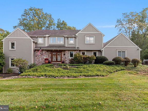 Simply the Best! Elegant and extremely well maintained with many updates; this 4000 square foot home is exquisite. 4-5 bedroom + 4 bathrooms set on 1.73 acres of complete privacy and cul-de-sac location. Open floorplan and an abundance of windows and skylights allow for much light throughout. High ceilings, three fireplaces, multiple sliding glass doors lead to a multi-level deck with electric awning, hot-tub, and outdoor shower. This deck feels like you are in a treehouse as it overlooks a wooded oasis. Double entry doors lead to large foyer, extremely large coat closet and views through the back of home. Kitchen offers large dining area, granite counters, tiled soffits, recessed lighting, walk-in pantry, and stainless appliances. Family room with ultra high ceilings, wood burning stove with floor to ceiling granite surround, and track lighting is a focal room in the home. The Primary bedroom is on a dedicated floor with private balcony, gas-fireplace, cathedral ceiling, exposed beams, recently installed engineered wood flooring, walk-in closet and to die-for master bathroom. Upstairs you will find additional bedrooms, a loft, laundry room, and an updated bathroom. On its own floor, great for in-laws or an au pair is a bedroom and full bathroom. The Office /Den is spacious with a gas fireplace. Enter mudroom with large coat closet and wet-sink through the oversized three-car garage; a wide staircase leads to a full-height attic, great for storage or future expansion. Lower level is accessible to the back yard through sliding glass doors and is equipped with large recreation area, gym, and more storage. Home is wired... an Alarm system with multiple cameras covering multiple angles of the interior and exterior. A feature not yet mentioned is the solid wood doors throughout interior of home. The LED lighting makes for great ambiance and is a cost-saver on electric. This home must be seen to appreciate features and amenities. Newer furnace(s), windows, doors, and roof. Council Rock Schools.