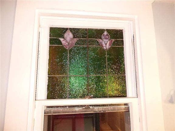Solid brick house that has many updates throughout. Multiple beautiful stained glass windows, original working pocket door, leaded glass, hardwood floors, ceramic tile, glass block windows, modern paint colors, updated huge bathroom with ceramic tile and jacuzzi tub, new windows, newer roof, beautiful landscaping, lovely woodwork, newer hot-water tank, newer furnace and a rear deck that leads to a landscaped and fenced in rear yard. New front porch started before owner passed away. Currently set up as a 2 bedroom but can easily be made back into 3 bedroom.