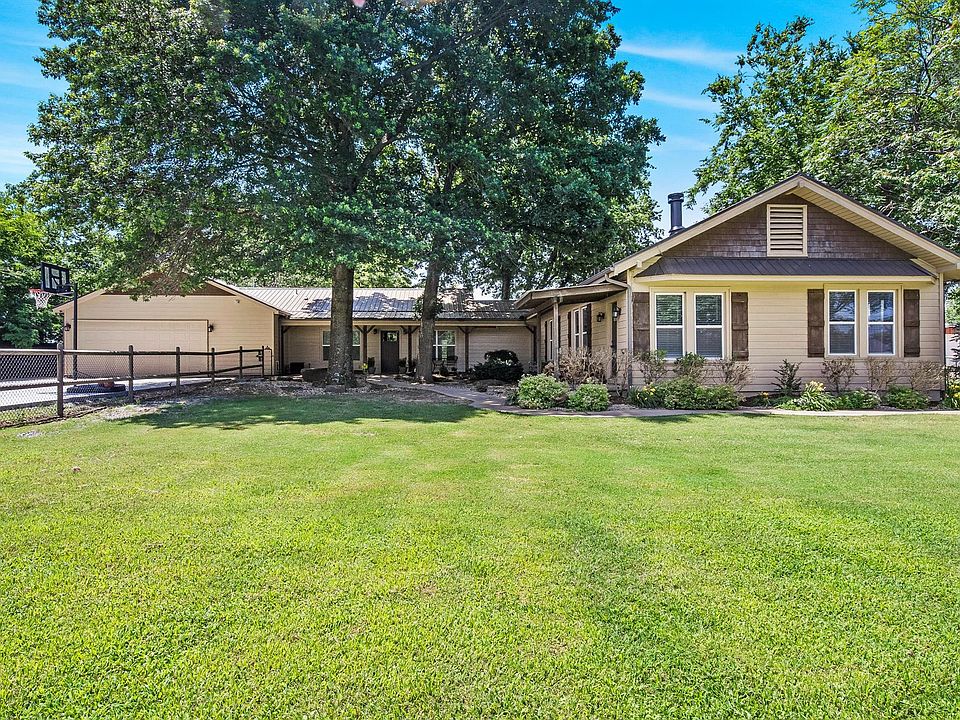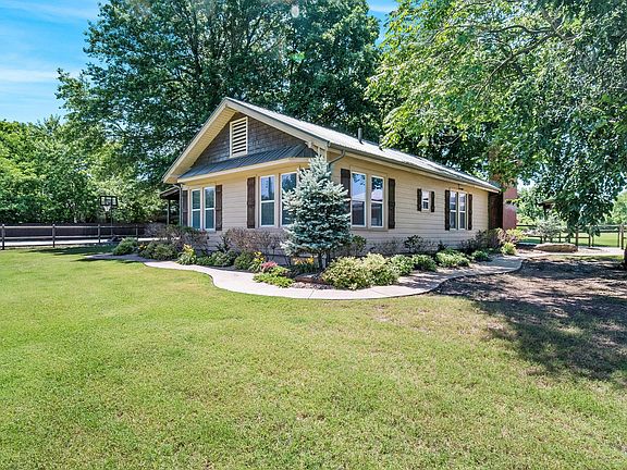 MUST SEE stunning property w/pages of updates/amenities. Newly remodeled entertainers kitchen w/oversized concrete island, stone fireplace and new appliances. Two Living spaces w/hand scraped wood floors & stained concrete providing a split floor plan w/master suite privacy. Large covered patio with view of gorgeous gunite pool w/waterfall feature, slide, tan deck & hottub. Not enough? How about 3 shops? 30x40, 40x70 and 40x50 shops for future investors ready to do business! All on over 2 acres!