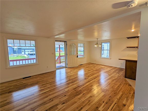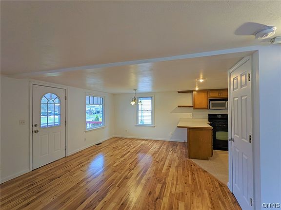 Multiple Offer situation, please have highest and best offers submitted by 4pm on April 2cnd for review that evening.Welcome to 132 East Chapel St in the Village of Canastota, NY. The minute you walk up to the covered front, Rocking Chair porch you will realize what a true GEM this home is. It features an open layout on the first floor with just refinished, gleaming hardwood floors in the living room and dining area, and an Oak kitchen with stainless steel appliances. Upstairs you will find three freshly carpeted bedrooms and a full bath. The primary bedroom is large with a double closet and a ceiling fan. The whole interior has been freshly painted. This home feels younger than its years because it went through a major remodel that included electrical, lighting, plumbing, insulation, some new windows, and kitchen tile in the early 2000s. Outside you will find a double-wide, paved driveway that leads to a two-car garage with a brand new roof. All this sits on over ½ acre, close to schools, Thruway, and all major points. Come see this beauty today!