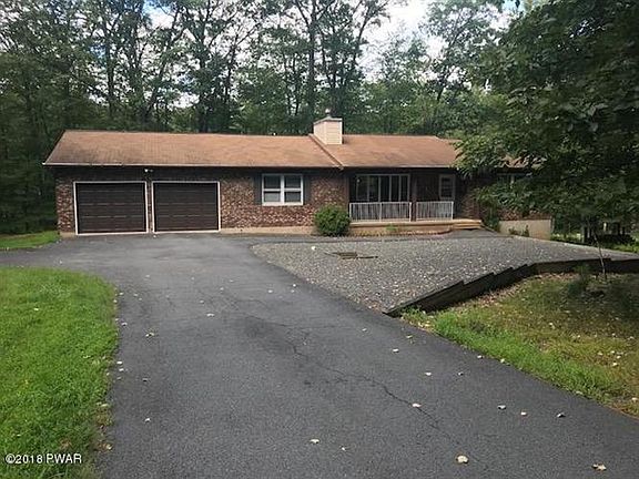 BRICK FRONT RANCH . Cozy and In immaculate move-in condition. walking distance to Pool, club house and play ground .Home features all new carpet, large freshly painted rooms , two new garage doors, living room fire place, formal dinning room, glass sliders leading to rear cement porch, master bedroom with bath, spacious bedrooms, full heated basement with walk out and paved driveway all set on one acre corner lot in Pocono Mountain woodland lake, close to Town and easy commute anywhere!