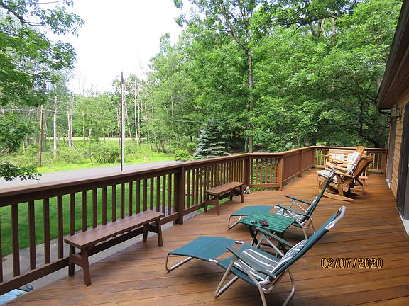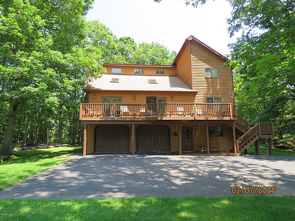 If you're looking for the perfect Mountain home, look no further. This contemporary chalet has it all! Open floor plan with floor to ceiling stone fireplace, tons of natural light, large loft , and high speed WiFi for working from home, With two master suites, two guest rooms, gourmet kitchen, central AC, and radiant heat in main floors . Plus two car garage! Front Deck has unobstructed View of golf course and the 15th hole is just steps away. Back deck is private with hot tub and plenty of room for entertaining with access to lush yard. Lake Wallenpaupack with private beach and picnic area just minutes away. Yes you can have it all!