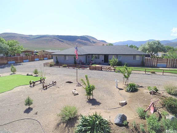 Located in the Fast-Growing Dayton area, this Unique, Spacious 1972 sqft, 3Bd/2.5Bth home has an open concept floor plan & sits on a fully fenced 1.64 acres. W/Easy access to Hwy 50, you’re 20 min E of Carson & 15 min W of USA Parkway, and a beautiful ride away (via 6-Mile Canyon) up to Virginia City! It has a 3-car attached garage & a 3-car detached Workshop/Garage! Custom paint job in the Family/Game room that will appeal to all you Harley Davidson Riders out there!!, The Kitchen has Refinished wood cabinets w/epoxy countertops, deep stainless sink w/new faucet & RO system for drinking water, newer garbage disposal and, ALL appliances included! Newer hardwood LVP flooring throughout, except for Kitchen & Baths where there is new custom decorative flooring! Designer light fixtures & new ceiling fans throughout, window blinds, curtains/rods included, all windows have Corian windowsills! Newer roof on House & Shop/Garage, water heater, well pump & pressure switch. The backyard has privacy fencing, producing fruit trees (Apple, Cherry, Peach, Plum, and Nectarine), a roomy chicken coop for your feathered friends that has water, power, and remote-controlled lighting. Space for RV, toys, gardens, and horses too! RV access w/hookups & dump! Too Many other upgrades and cool things to list and, I have to keep this short LOL! SO, Don’t miss this GEM, call your favorite Realtor Today and set up a showing!