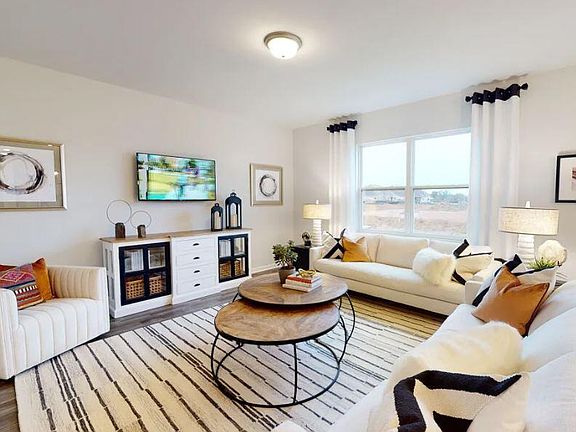 Upon entering the Rosella Floorplan you are greeted by a huge Porch, perfect for swings. The four bedroom two and a half bath home has a flex space and loft area. The open concept kitchen has a quartz center island and plenty of storage. Luxuryt Vinyl plank floors adorn the main living areas. Bradford Pointe includes Cable, Internet, community pool, basketball, playground and lots of walking trails.