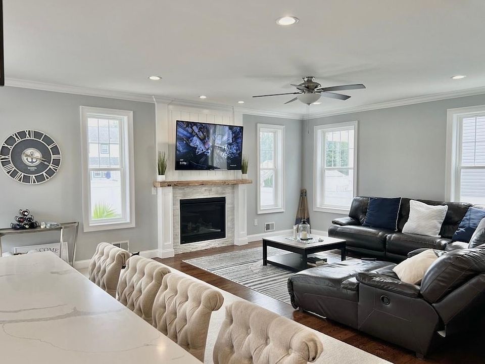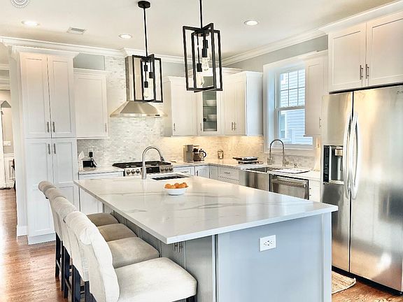 New Construction. Walk to the beach! Weekly price is $10,000. Monthly price negotiable. 4 large bedrooms with 2.5 bathrooms on a quiet street. Grand entry foyer with coffered ceilings and custom wrought iron stair case. Kitchen with SS appliances, quartz counters, marble backsplash, and large stainless steel sink. Open floor plan. Family room w/ gas fireplace and doors leading to patio and large private backyard. Only 3 short blocks to the beautiful Long Branch Beaches. Less than 1 mile walk to Pier Village restaurants and bars. Extensive wainscoting and moulding throughout. Marble bathrooms throughout the house. Master suite features vaulted ceilings, WIC, and marble bathroom w/ 2 sinks and large soaking tub. FULLY FURNISHED SUMMER RENTAL. NO PETS ALLOWED.