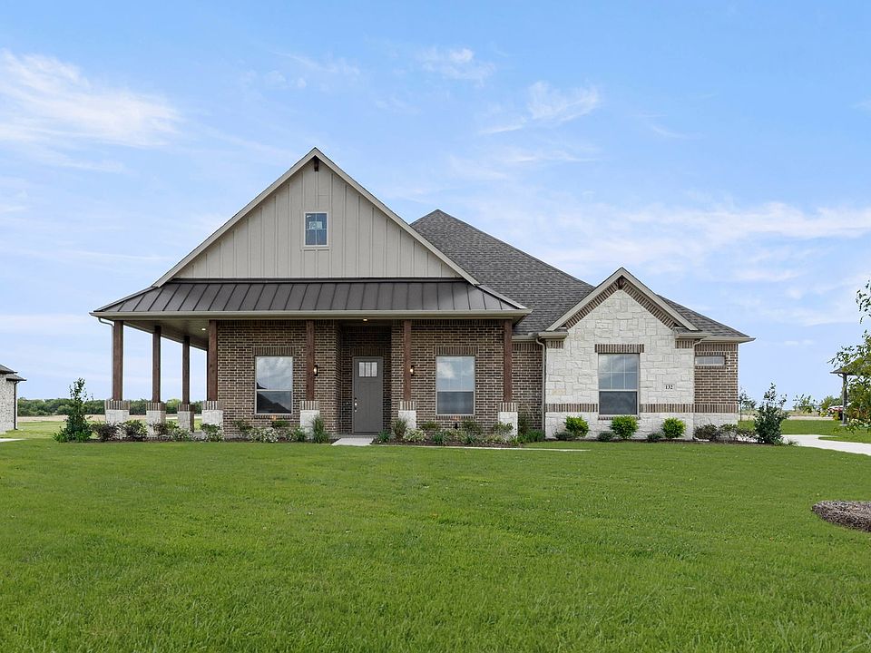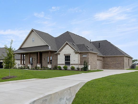 MLS# 20969293 - Built by Sandlin Homes - Ready Now! ~ Introducing the Henderson plan – a spacious and refined home featuring 4 bedrooms, 4 bathrooms, a media room, and a variety of thoughtfully designed upgrades. Highlights include dual sliding doors in the dining and nook areas, a beam-accented ceiling, an optional storage island, utility room sink and built-ins, and a charming box bay window in the primary suite. Blending luxury with comfort, the design of the interior showcases a mix of natural wood stained and off-white cabinetry colors, complemented with a textured tile backsplash. The gourmet kitchen is enhanced by grand chrome pendant lighting and a sleek, modern fireplace tile surround that echoes the kitchen’s aesthetic. Chrome plumbing fixtures continue throughout, adding a sophisticated touch to the home. The spa-inspired primary bathroom features large-scale tiles across the shower walls and flooring, offering a serene and elegant retreat.