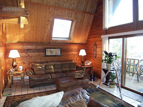 This is the perfect mountain chalet w/ great views of the Divide/James Peak. Square faced, cedar log home in great condition with open floorplan with 2 story living room loft, great natural daylight, corian counter in kitchen, deck off the master suite, tracklights, skylights, charming wood stove. Loft makes perfect home office. Decks overlooking flower gardens, aspens, evergreens, turkeys, elk, deer, and fox. Newer 3 car garage with radiant heat makes great workshop area. 25 minutes to Boulder.