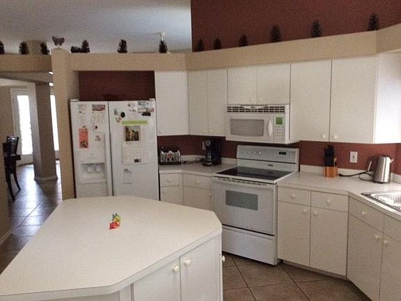 Rented - Jan 5 - May 5, 2018. Seasonal/half a year/short term available throughout the year. Posted rate is a winter peak season rate. Off-season rate is $2200 per month, $900 per week, $1500 for 2 weeks, all utilities included. Additional discount for minimum 3 months rental. Vacation in this beautiful 3 bedroom/3 bath Rotonda home with large. This is a special, very comfortable home with fantastic layout with a total of 3200sf under the roof : OPEN CONCEPT with HIGH ceilings and living & dining room, spacious kitchen with centre island and pantry, open to cosy family room, 3 spacious bedrooms, Huge master bedroom has a large en-suite bath and walk-in closet, plus a walk-out to the pool and KING size bed. Three separate walk-outs to the beautiful, over-sized lanai with LARGE heated pool and a spa. Extra bathroom by the pool makes the house even more comfortable. The lot is approximately a HALF acre with HUGE CIRCULAR driveway, very private, backing to the WOODED area and small POND, and adorned with palm and oak trees. The home is packed with everything you may need for your stay: All large and small appliances, pots, pans, dishes, cutlery, bedding, towels, etc; furnished in a simple, yet comfortable style with plenty of comfortable room for sleeping, watching T.V., reading, sunbathing, swimming, biking, or whatever your favourite activity may be. A D D I T I O N A L D I S C O U N T for multiple-month rental between June and December. Small dogs may be permitted , 1 King Bed, 3 Queen Beds