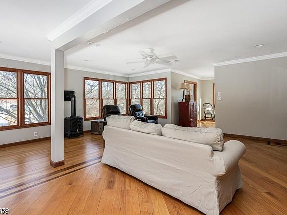 Situated on a lovely 2.30 acre lot in close proximity to Bulls Island recreation area and D&R Stockton Bulls Island trail. Covered entry leads to foyer that opens to expanded living room with walls of windows, recessed lights and gas stove. Updated center island cherry kitchen with soft close cabinets, honed granite countertops and breakfast bar. Double slider leads to low-maintenance composite deck with retractable awning. Dining room, powder room, laundry room and direct entry to attached 2-car garage complete the main level. Second level features a master suite with sitting area, two closets and updated bath that features a tiled walk-in shower. 2 additional bedrooms and updated Main bath with pedestal sink and tub/shower. 4th bedroom has a separate private entry with en-suite bath. Great space for teen or in-law suite. Many recent updates with high velocity central air conditioning system. Updated kitchen and bathrooms.