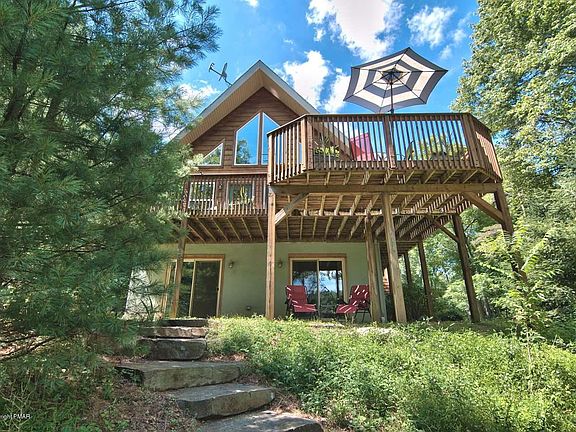 LANDMARK BARRETT TWP SITE! OWN A PIECE OF HISTORY IN OUR BELOVED TOWN! The chimneys still stand from the old Henry Price House, BUT A CEDAR SIDED CONTEMPORARY HOME OVERLOOKING THE PRIVATE POND NOW FITS INTO THE LANDSCAPE OF THIS 35 ACRE PROPERTY. Strategically placed for full enjoyment of the water, you will love the woodsy style, and openness of the home. Enjoy coffee or wine on the deck, by the fireplace, or out on your own pond! Wildlife abounds, your worries + cares will melt away! Includes cathedrals, skylights, a wall of glass, bamboo floors, tile, granite, loft w/ private bed + bath, master suite on main level, office + powder rm, and the finished basement has a bedrm, bath, fam rm, and laundry. Land is NOT subdividable, per zoning and wetlands conservancy. See photos!