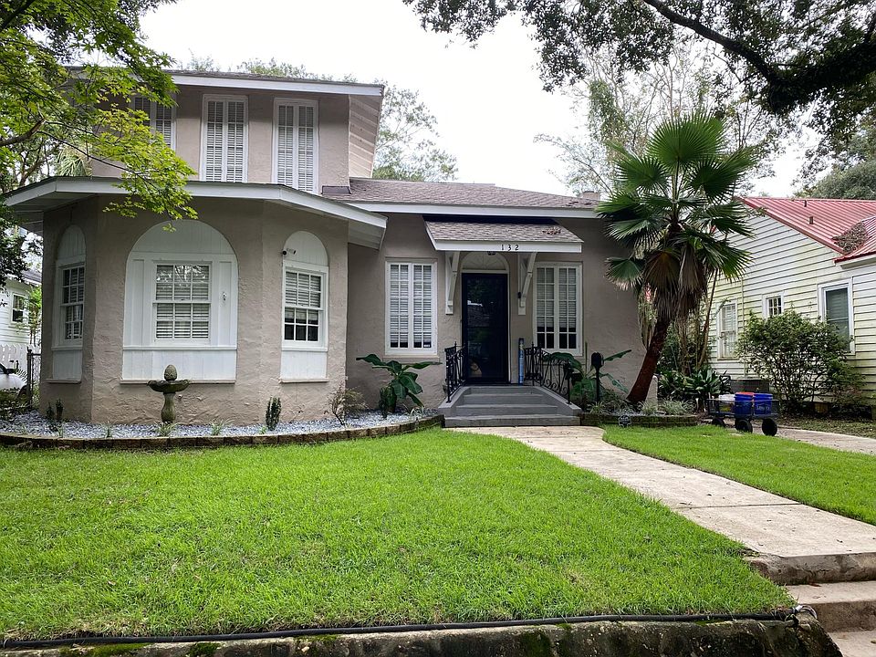 Amazing 3 bedroom, 1 bathroom Spanish style stucco house in historic Midtown Mobile. Centrally located near University Hospital and Infirmary Hospital and in walking distance of Publix, bars and restaurants. Quiet neighborhood adorned with Spanish moss covered oak trees. Amenities included: central air, central heat, small deck, dishwasher, hardwood floors, stainless steel appliances, updated kitchen, updated bathroom, washer dryer, yard, driveway, screen doors, full fenced yard, and functional fireplace. Biweekly lawncare included. Utilities are not included. Pet friendly house and neighborhood.
