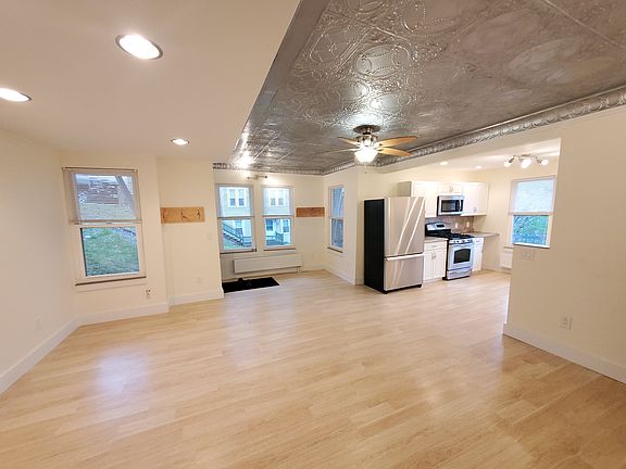 Please read the entire ad and respond accordingly. This beautiful stylish home is one of Belvedere Realty's very best apartments in North Adams! It is ready to go! It was completely gut rehabbed in 2016 and offers gorgeous, stylish accommodations including: a beautiful kitchen with stainless gas range, microwave, dishwasher and refrigerator, washer and dryer; a spacious living room with ceiling fan, SILVER tin ceilings and stylish lighting; a huge master bedroom with great closets, laundry closet and ceiling fan and a beautiful bathroom with a luxurious 4ft square tiled shower. Located Furnace Street up behind the Heritage State Park in North Adams, the apartment has a private lovely covered rear deck offering unbelievable views across downtown North Adams and across to the Hoosic Range of hills beyond. The views are truly wonderful! The apartment has beautiful wood laminate floors. The apartment has ONE allocated parking space. Heating is provided by a modern high efficiency boiler with European style wall radiators. Sorry, we do not allow pet dogs. This building and the entire premises are entirely smoke-free and must remain that way. Belvedere Realty is a full-time professional property management company with professional full time maintenance staff. We aim to offer clean, high quality, safe housing and aim to find tenants who value living in a community where people simply want to live peacefully and without drama. We look for tenants who are clean, have a track record of living quietly and respectfully towards neighbors, of paying rent on time and taking great care of their apartment and living space. Deposits (1st, last and security) and EXCELLENT current and Prior LANDLORD references are required. Belvedere Realty requires an initial one-year lease and the payment of first, last and security deposits each equal to one month's rent. If this ad is still up, the apartment is still available. Please note: I do not set up showings by text or email alone. We need to speak on the phone first. Prior to speaking on the phone or setting up a showing, I ask that you send me an email telling me a bit about yourself and your rental history and requesting a free no-commitment application. The application doesn't ask for detailed personal information and only takes a couple of minutes to complete. Best of all, it'll save you from the 20 questions I tend to ask when we speak on the phone. At this point, I receive many calls/emails every day for apartments. It is impossible to respond to every query. Please understand the more information you can supply in your email or voicemail about your rental/housing history, reason for moving and funding, the more likely it is that I 'll be able to return your call promptly and efficiently. Thanks for understanding! One year Lease minimum Zillow applications are fine, but require completion of Belvedere application for showings 1st, last and security required Excellent current and prior landlord references are required Tenant pays own gas and electric This is a SMOKE FREE building Tenant takes care of steps down to apartment Parking for ONE vehicle only