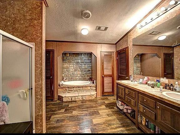 Are you looking for room to spread out for a great price? Look no further, this 4 bedroom, 2 bathroom, manufactured home also features two living areas, a large kitchen, open concept floor plan, a spacious master suite and hard surfaced floors. Take a look at this home today. The living room features a wood burning fireplace and is open to the over sized kitchen with a large island the also opens to the second living area. This home has a split floor plan with the master suite situated on the opposite end of the home from the other three bedrooms and bathroom.