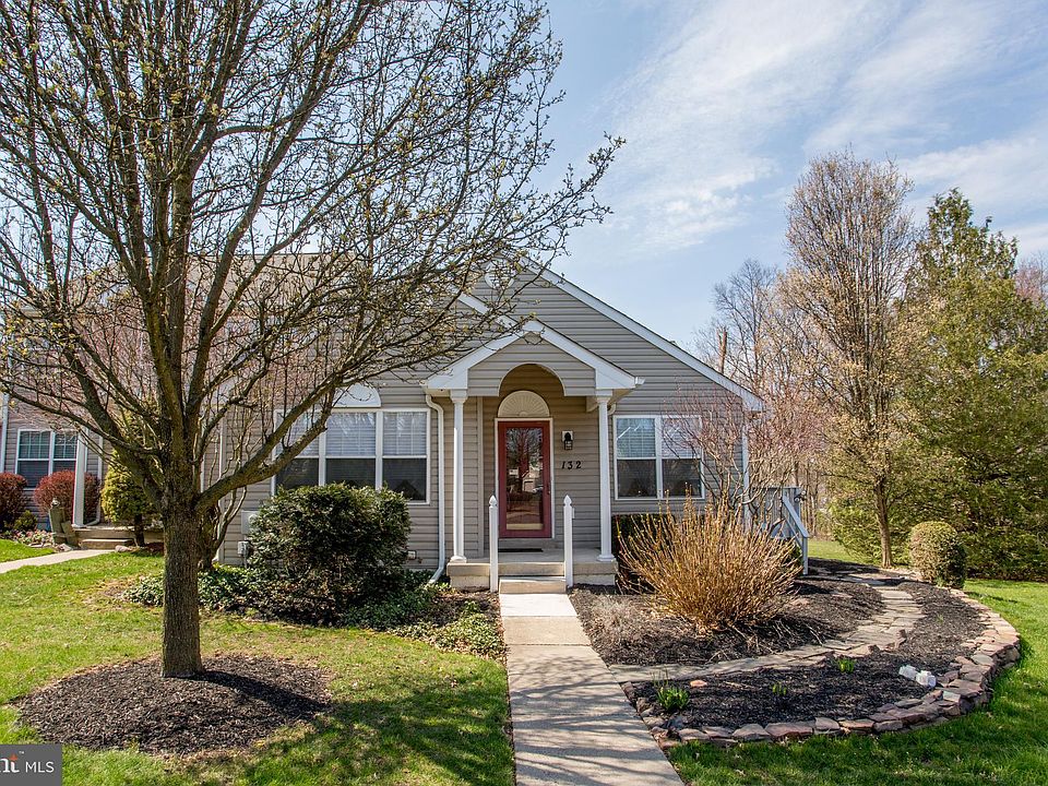 Rarely offered! This first floor townhouse offers the ease of first floor living and is outdoor maintenance free. This end unit back to woods and is located at the end of a cul-de-sac. The living room boasts vaulted ceilings and hardwoods as well as hardwoods in the dining room, hall and second bedroom. Large eat-in kitchen has sliders leading to your private deck. You will enjoy retiring to your large main suite with vaulted ceilings, large walk-in closet and a private bath with soaking tub and shower. The basement is partially finished with a gas fireplace, half bath and plenty of storage. There is also an outside entrance for convenience. The home has been freshly painted throughout and is move-in ready. Close to shopping, entertainment, and major highways.